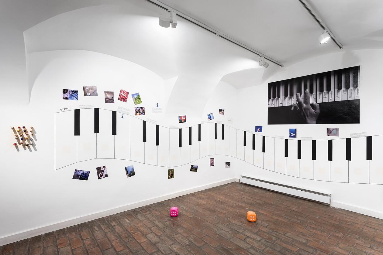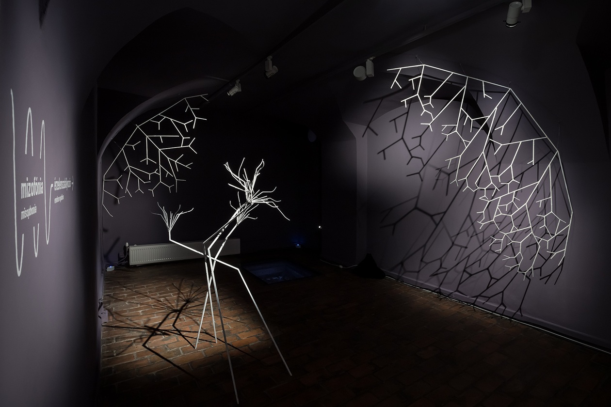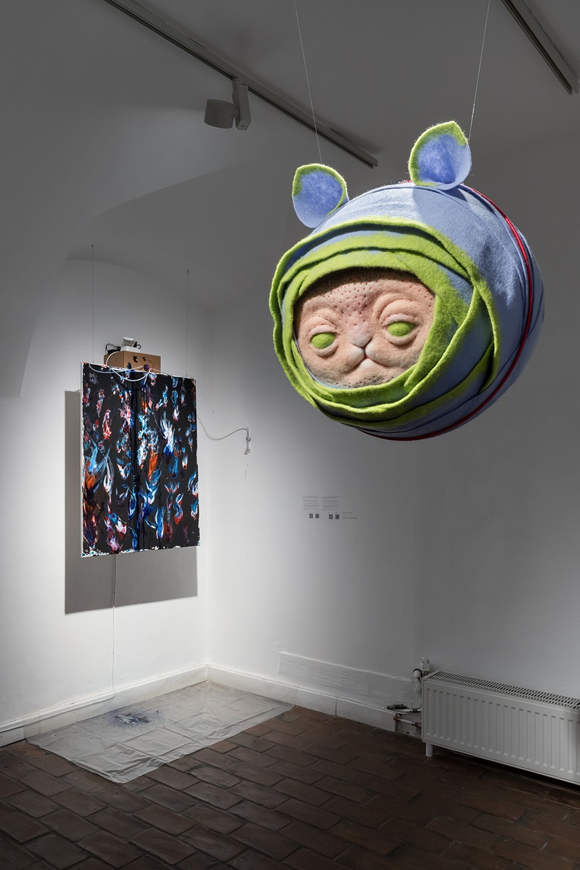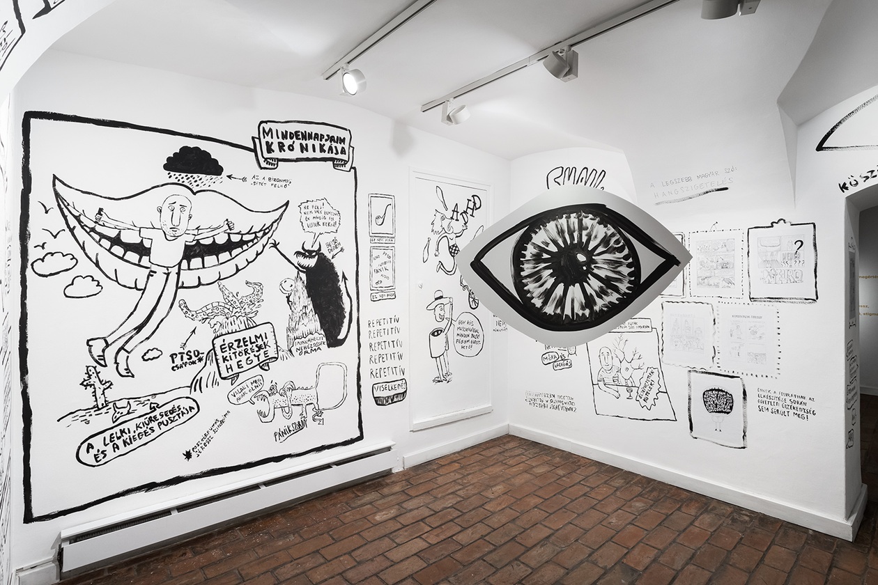 A kiállított munkák megértése, az általuk adott nézőpont beépítése saját működésünkbe közel sem mindig egyszerű feladat. P. Szathmáry István egész termet beterítő grafikái (Minden agy szép) első pillantásra vidám figurák és jelenetek tömkelege, de ott van minden megszólalásában a frusztráltság, ami a felnőttkori diagnózis kézhezvétele előtt és után is részét képezi a neurodivergens személyeknek. Humoros, de kíméletlenül őszinte, szó szerint feketén-fehéren tárja elénk vívódásokkal teli világát. Gyarmati Zsuzsi egésztermes társasjátéka (Életke) is csak első pillantásra mókás. Valójában egy élet-halál harc bontakozik ki a szemünk láttára. A művész saját élményei nyomán vezeti át a nézőt a diagnózis felállításán át a gyászfeldolgozásáig. A „játék” azonban kilép saját életének határai közül, hiszen a falon sorban tűnnek fel az autista közösség kihívásait bemutató információs mezők is. A kiállítás alkotói rendkívüli bátorsággal dolgoztak saját élményeikkel, ezzel pedig a közbeszéd témájává emelték azt, amit az érintettek egy jelentős része a maszkolással pontosan elfedni igyekszik. Németh Dóra műcsoportja (Nem ér a nevem) egy kedves kis figura álarca segítségével mutatja be a maszkolás hétköznapi helyzeteit, amelyet a neurodivergens emberek létbiztonsági okokból vállalnak, de el is szenvednek. A térben szinte lebegő nemezelt maszkot körbejárva feltárul a bűbájos kis maszkban megbúvó sebezhető és elszigetelt „én”, aki idegrendszerének hálózatában próbál eligazodni. Az idegrendszeri sajátosságok ugyanis fontos tényezői a neurodivergens személyek megértésének: olyan egyéni jellemzők, amelyek a neurotipikus szemlélő számára első pillantásra furcsák lehetnek, mégis komplex és „mást” is bevonó alkotások jöhetnek létre a speciális gondolkodásmód folyományaként, mint Rubóczki Benedek interaktív installációja (Cím nélkül) és festménye. Az installáció szenzorai a nézőt figyelik, letapogatják mozgását és reakcióit, akárcsak az erre fogékony személy idegrendszere. Ez az érzékeny idegrendszer mizofónia esetében bizony kifejezetten heves válaszokat adhat az őt körülvevő zajokra. Ebbe a szindrómába és egy komplex érzelmi- és figyelemszabályozási folyamatba, a különböző érzelemszabályozási technikákba vezeti be a nézőt érzékletes csillogó szobraival Dóra Emese (Világok között). A barlangot, zárt világot idéző térben felsejlő formák vonzóak, ugyanakkor pontosan azt a lélekállapotot írja le, amely a neurodivergens személyt jellemzi. A szenzorossággal dolgozik Velegi Csaba is (Somatic Loop), aki hétköznapi hivatását, a svédmasszázst hívja be egy pillanatonként újjászülető zenei performansz létrehozására. Az emberi testen mozgó kezek hanggá változnak, és az így létrejött zene közvetíti a művész világát a néző felé.